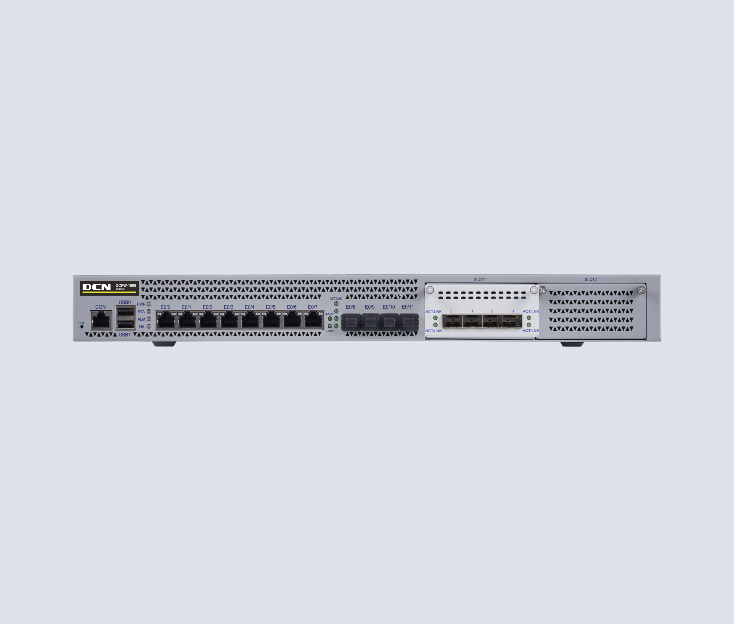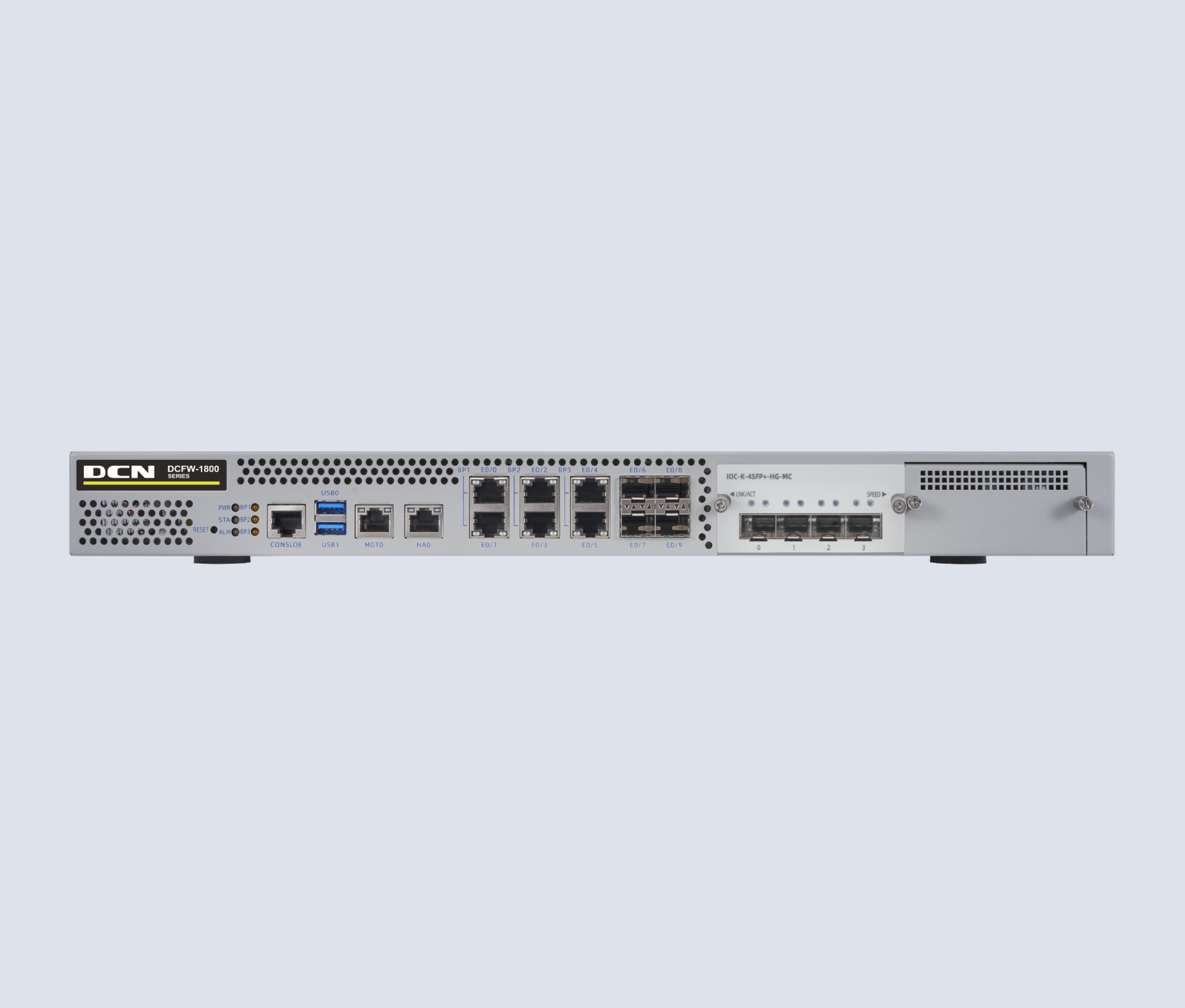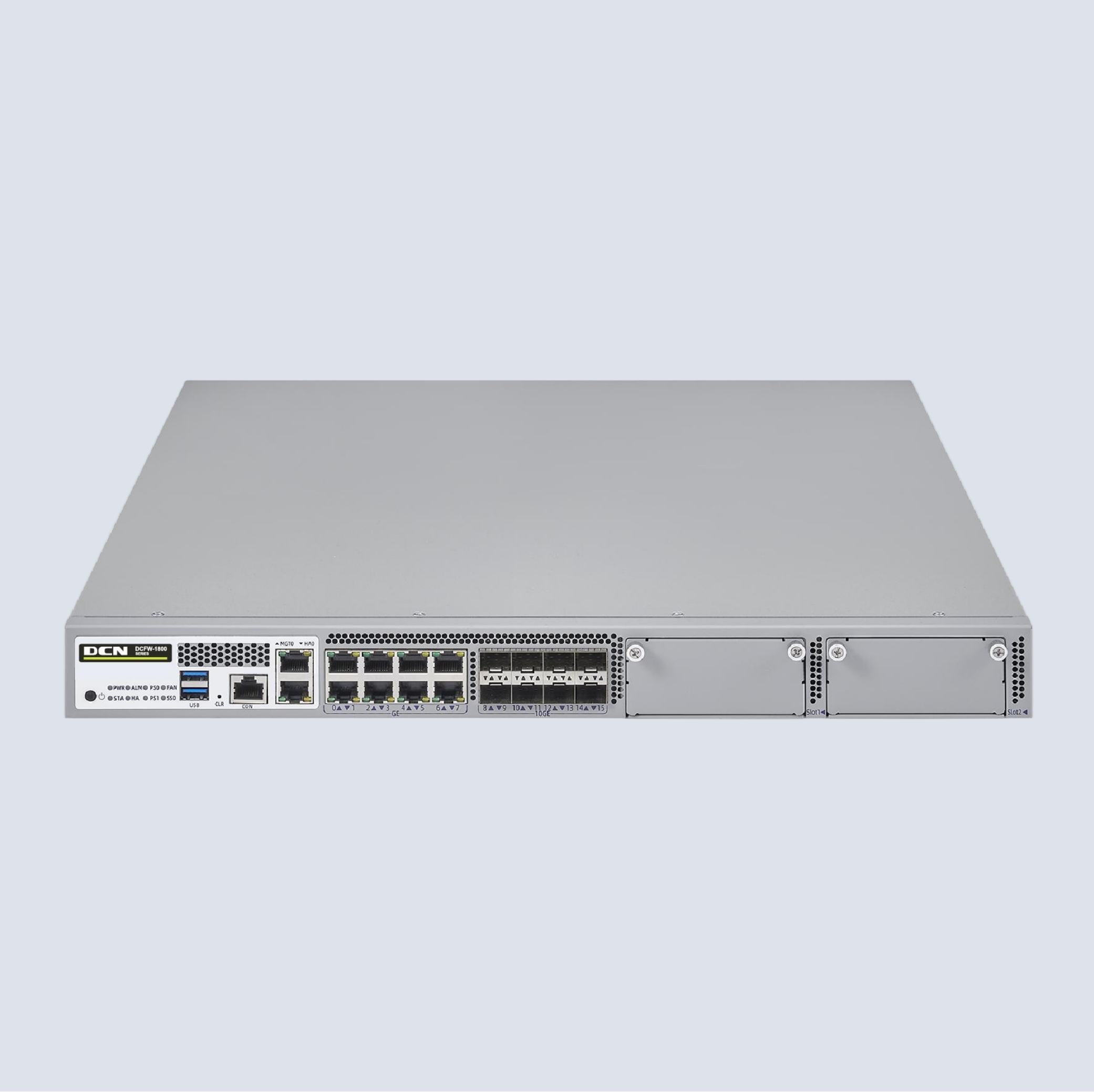 DCFW-1800-N5660-G 软硬件平台基本系统,含硬件保修、应用识别库升级和软件升级维护服务。硬件参数:1U,1 个CON 口,1 个MGT口,1个HA口,2个USB口,8个千兆电+8个万兆光口,2个通用扩展槽。